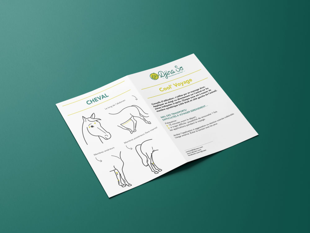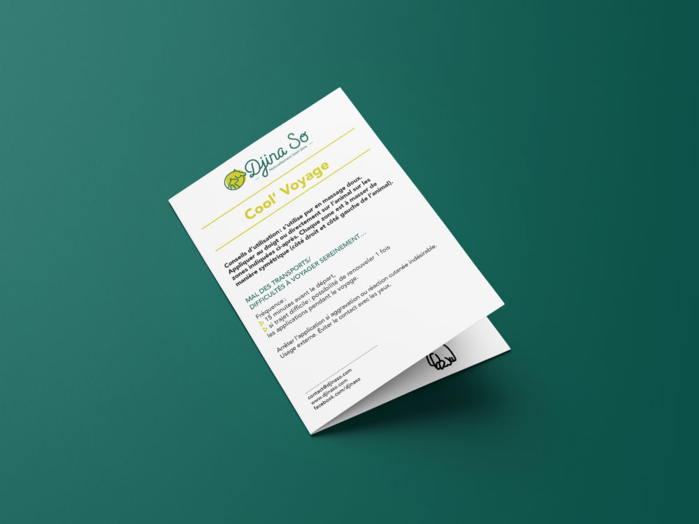 La charte graphique de Djina So est donc composée d’un logo générique et de signes associés aux gammes. Elle est déclinée sur différents supports (flacons des produits, livrets d’utilisation illustrés, communication digitale).