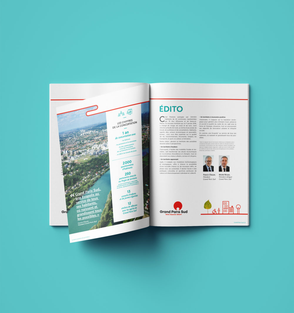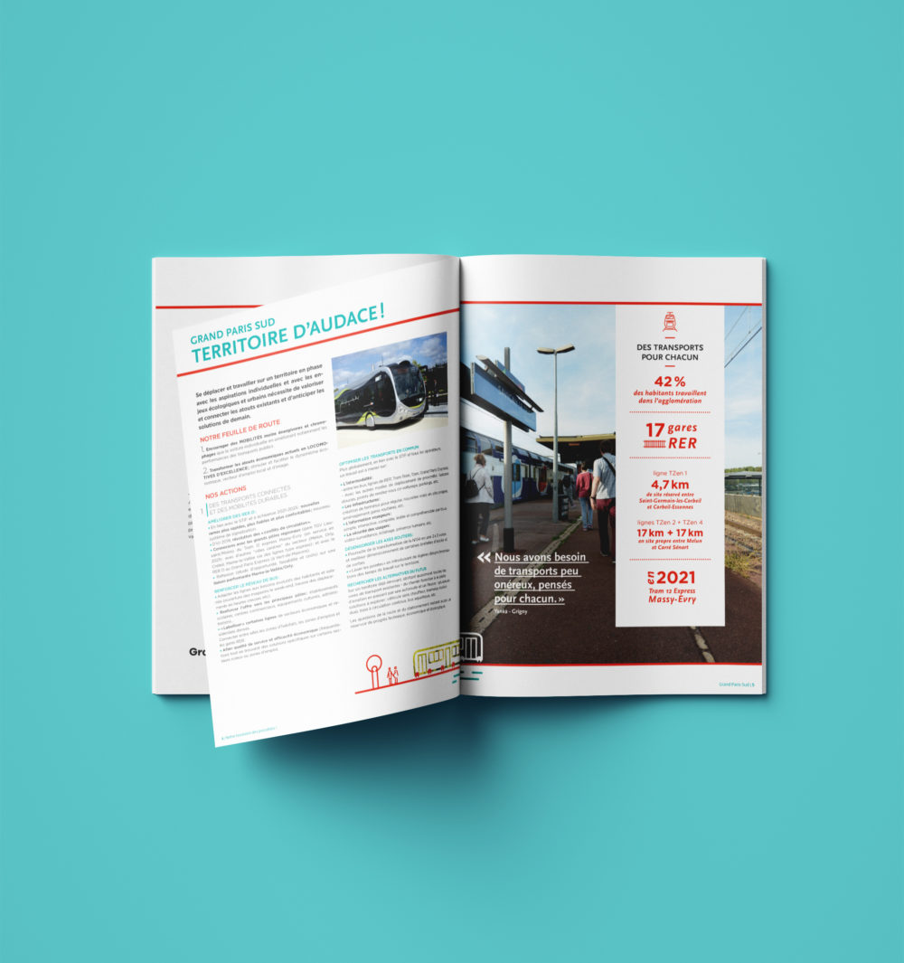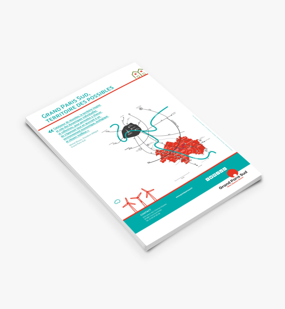 L’agglomération de Grand Paris Sud élabore et met en place un projet de territoire qui s’appuie sur sa diversité sociale, urbaine et paysagère, sa sociologie jeune et dynamique et son potentiel économique. Les élus souhaitent communiquer sur ce programme auprès des habitants grâce à des brochures, des kakémonos et une campagne d’affichage publique et numérique. Réalisé au sein de l’agence Résonance Publique.